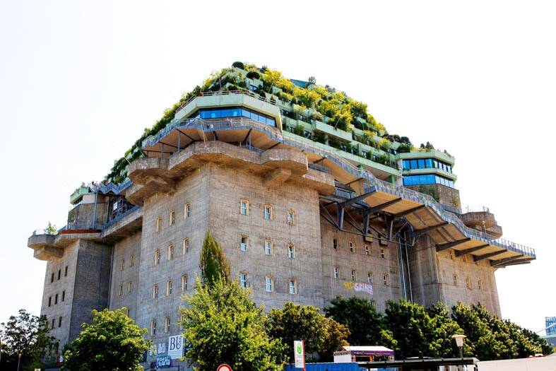 Almost 40m tall and weighing 76,000 tonnes, the St Pauli bunker has exterior walls 2.5m thick and a roof consisting of 3.5m of reinforced concrete.