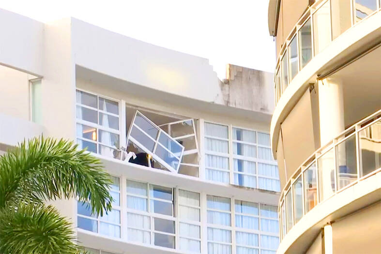 Mangled pieces of the helicopter’s propeller landed in the hotel’s pool, an emergency services official said.