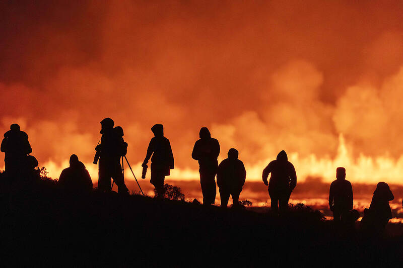 Dozens of people could be seen parked on the side of the main road from the capital, Reykjavik, to Iceland’s Keflavik airport to watch the eruption, a correspondent at the scene said.