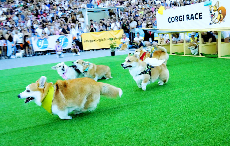 Dogs compete in Lithuania’s Corgi Race Vilnius on Saturday. Separated into categories based on height and weight, the dogs raced in a 50m sprint, competing in heats, semi-finals and a final at a stadium in Vignis Park. The event also included a costume contest.