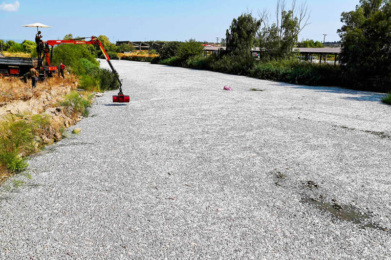 Greek authorities have started collecting hundreds of thousands of dead fish that poured into a tourist port in the central city of Volos this week after the fish had been displaced from their usual freshwater habitats during flooding last year.