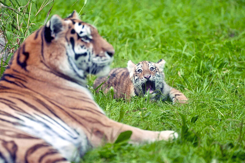 Andrei and Amaliya got to venture outside and feel the grass of their new home under their paws on Wednesday for the first time since their 12-year-old mother, Dari, gave birth on May 23.