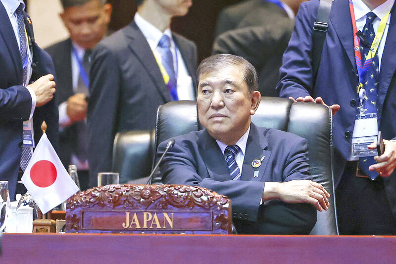 “Prime Minister Ishiba reiterated Japan’s serious concerns about the situation in the East China Sea, including ... the intensification of Chinese military activities in areas surrounding Japan,” the ministry said yesterday after Thursday’s meeting on the sidelines of the ASEAN summit.