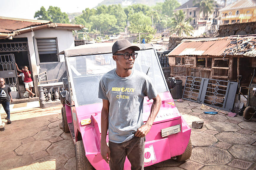 In his small Freetown workshop, engineering student James Samba tinkered with batteries and electrical parts he hoped could help clean up Sierra Leone’s polluting public transport system.