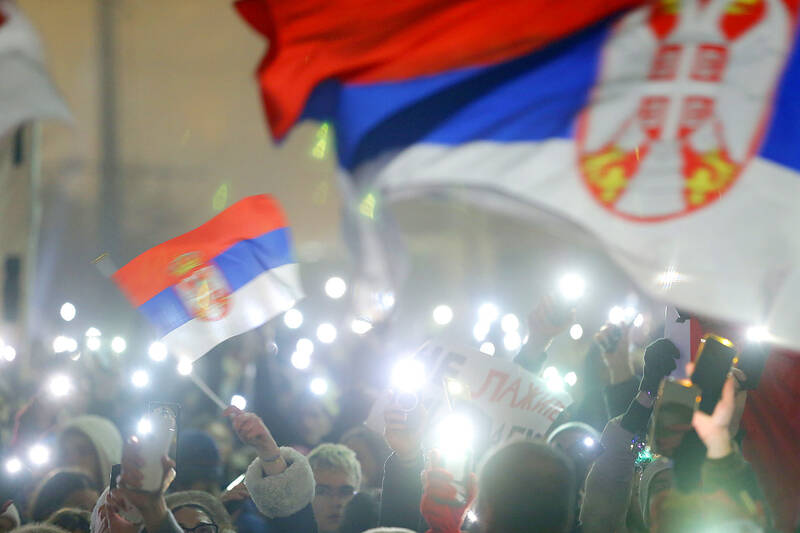 In Belgrade, university students marched through the capital city’s center late on Tuesday, where local authorities had organized New Year’s Eve celebrations with music and performance programs.