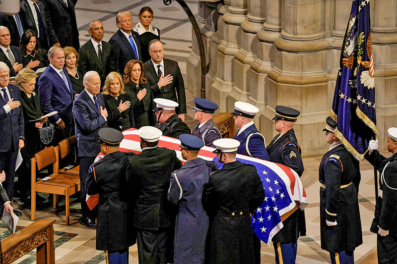 All politics were not left outside the cathedral, though. Biden, who leaves office in 11 days, repeated several times that “character” was Carter’s chief attribute.