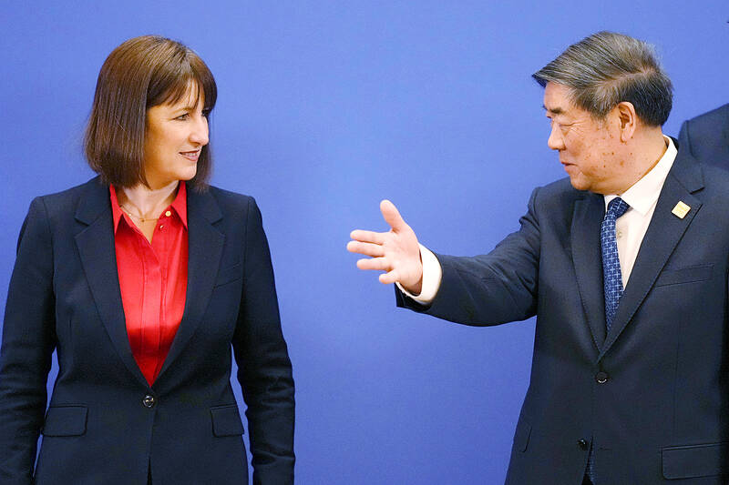 Reeves is the most senior British government official to visit China since then-British prime minister Theresa May held talks with Chinese President Xi Jinping (習近平) seven years ago.
