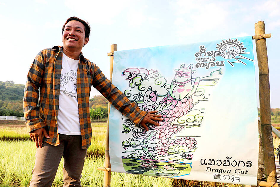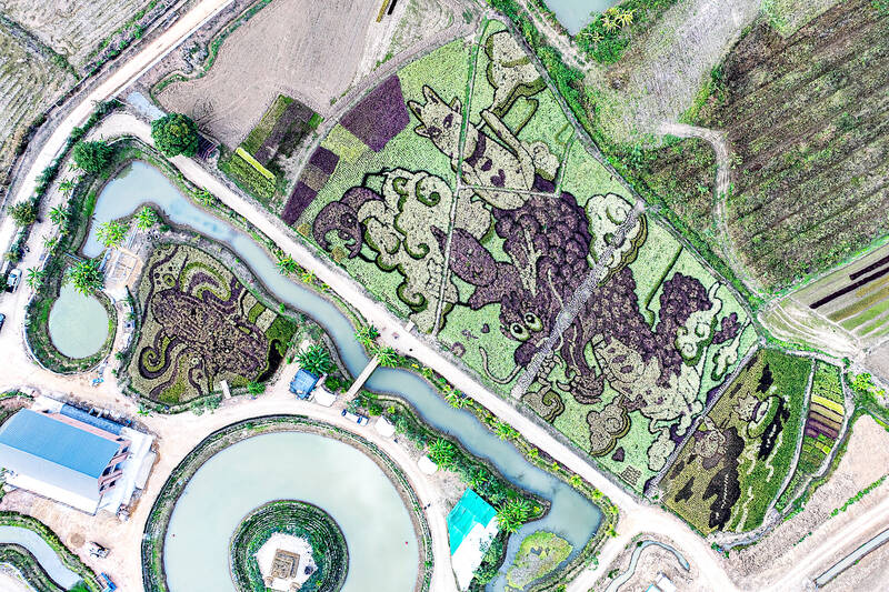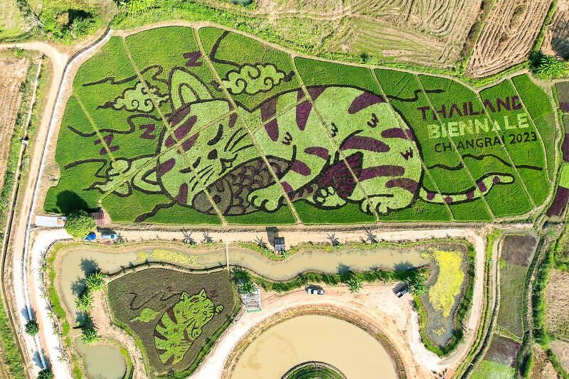 A red dragon, a feline deity, dogs and cats cover Tanyapong Jaikham’s rice paddies in northern Thailand, a living tribute in rice plants to flooding that inundated nearby areas in September last year, stranding thousands.
