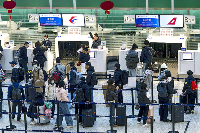 At Beijing West Station, an Agence France-Presse journalist yesterday saw thousands of travelers wrapped up in parkas, many wearing face masks to avoid catching anything on packed trains, dragging their suitcases through the hallways before boarding the carriages.