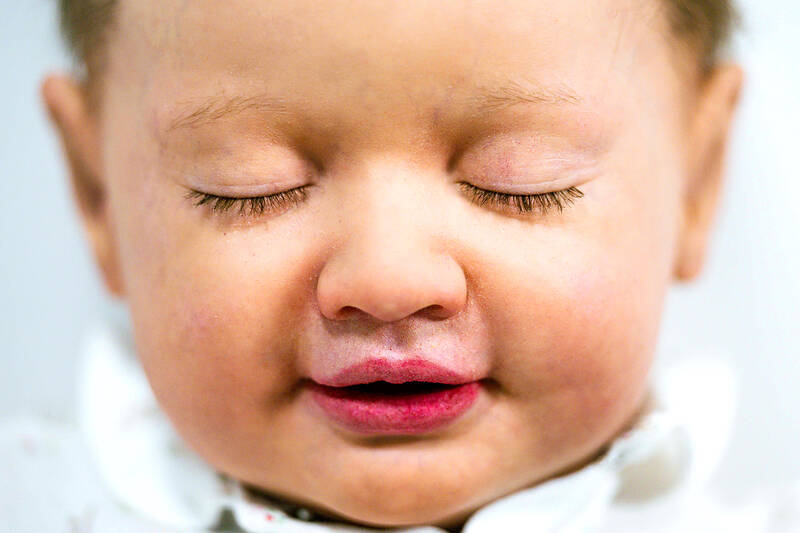 With slightly red cheeks, tiny veins under the eyelids, skin folds and pores, it is hard to tell the difference from a real child.
