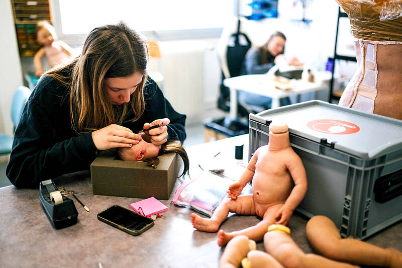 In a workshop outside Paris, Celine Lallement stitched hairs into a silicone baby’s skull — the latest creation from a studio specialized in making ultra-realistic infants for the film and TV industries.