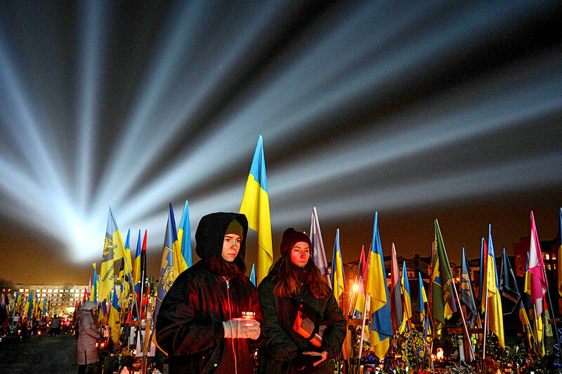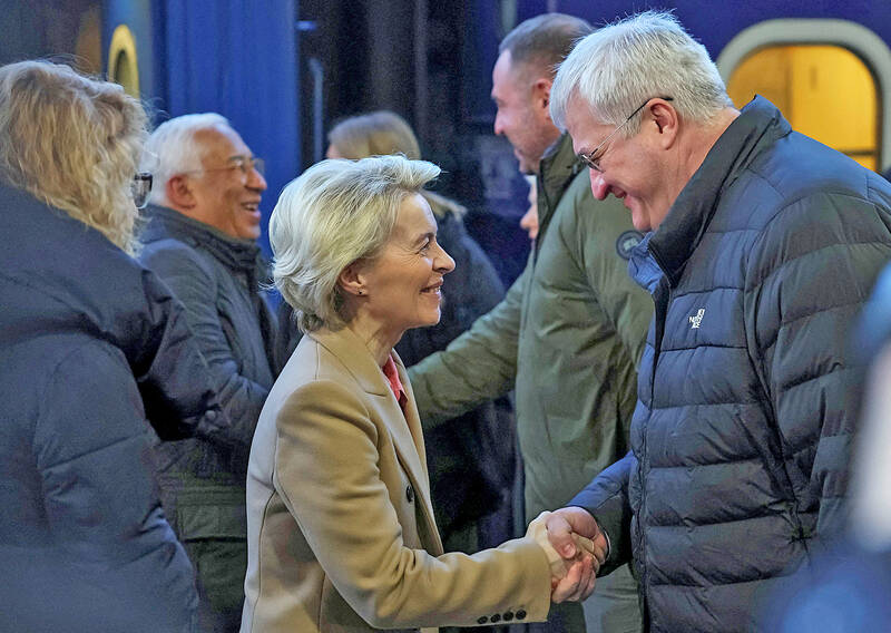 A dozen leaders from Europe and Canada yesterday visited Ukraine’s capital to mark the third anniversary of Russia’s invasion in a show of support for Kyiv by some of its most important backers.