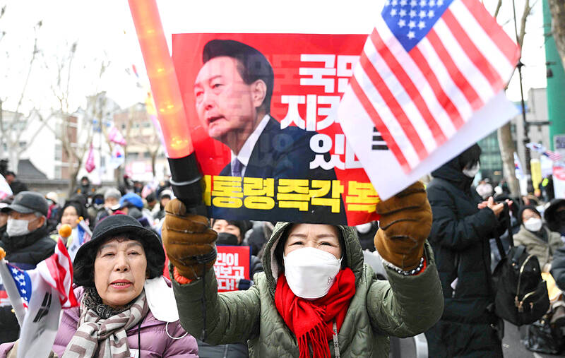 Outside the court, pro-Yoon protesters chanted “Drop the impeachment,” and some held signs denouncing the Chinese Communist Party and North Korea — which they have accused, without evidence, of interfering in South Korean elections to the benefit of the opposition.