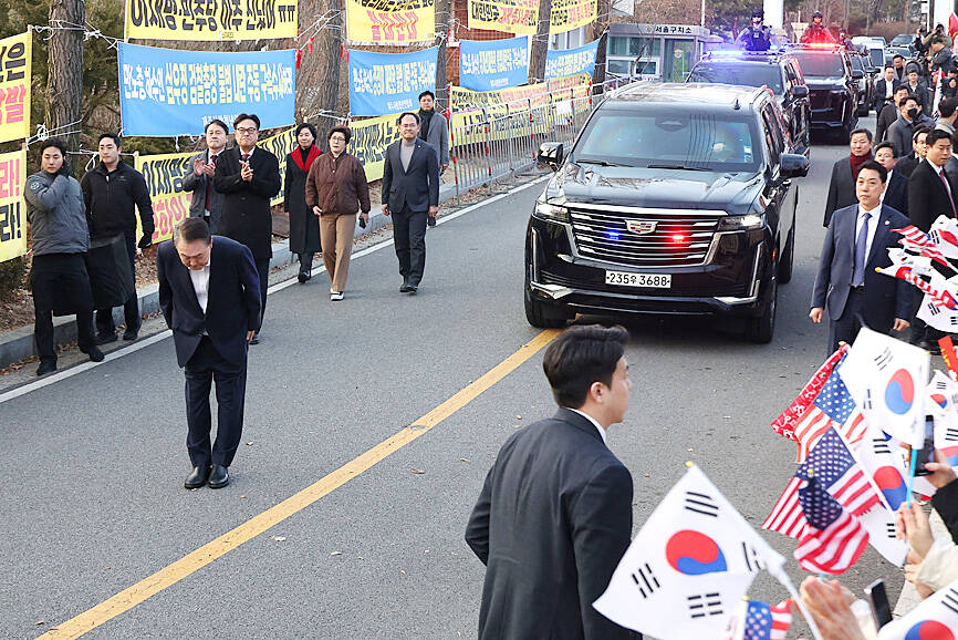 Impeached President Yoon Suk-yeol was yesterday released from prison, a day after a Seoul court canceled his arrest to allow him to stand trial for rebellion without being physically detained. TV footage showed Yoon waving and bowing deeply to his supporters. In a statement distributed by his lawyers, Yoon said that he “appreciates the courage and decision by the Seoul Central District Court to correct illegality,” in an apparent reference to questions over his arrest. He said he also thanks his supporters and asked those who are on hunger strike against his impeachment to end it.