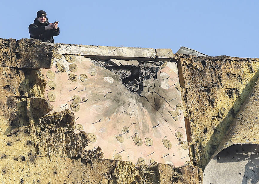 Footage of the building, published by RIA Novosti, showed a charred spot on the facade of a multistory residential building near the roof, with bits of the building’s lining stripped off.