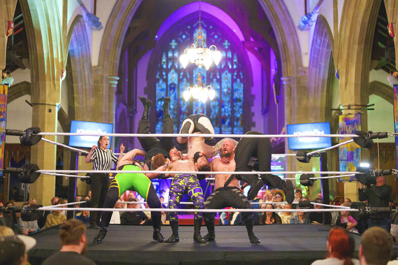 This is Wrestling Church, which brings blood, sweat and tears — mostly sweat — to St Peter’s Anglican church in the northern England town of Shipley.