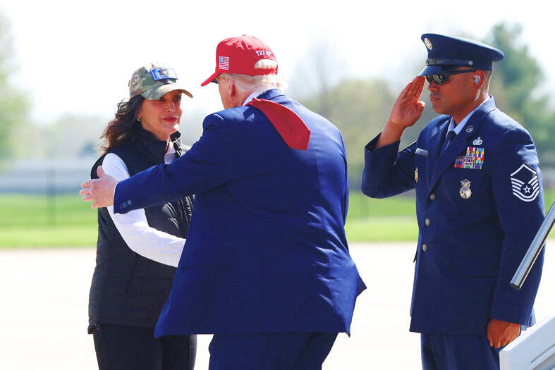 Michigan Governor Gretchen Whitmer before the rally attended an event with Trump at Selfridge Air National Guard Base to announce a new fighter jet mission at the base.