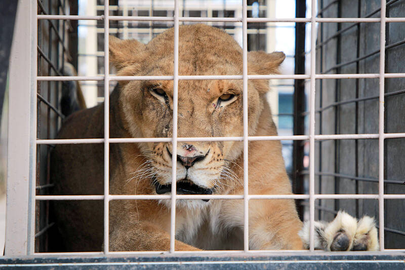 Workers sedated the most dangerous of them, including lions and tigers, so they could be placed in cages for the 220km road trip.