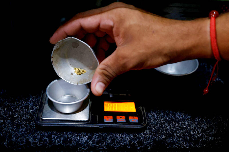 Merchants use scales to carefully weigh the flecks people guard in plastic pill bottles or wrapped in pieces of paper, and market goods are priced in weight of gold.