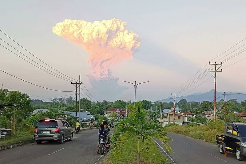 Indonesia’s Mount Lewotobi Laki-Laki yesterday erupted again with giant ash and smoke plumes after forcing evacuations of villages and flight cancelations, including to and from the resort island of Bali.