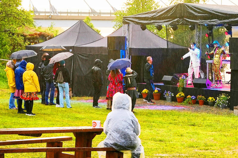 Some drank beer and ate sausages, and the crowd seemed to enjoy the summer festival atmosphere, despite spells of rain.