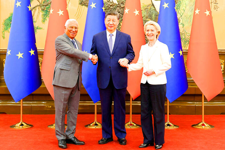 Chinese President Xi Jinping (習近平) yesterday said that China and the EU must deepen trust in a turbulent world, but the bloc’s top officials called for “real solutions” to move past an inflection point as they met in Beijing.
