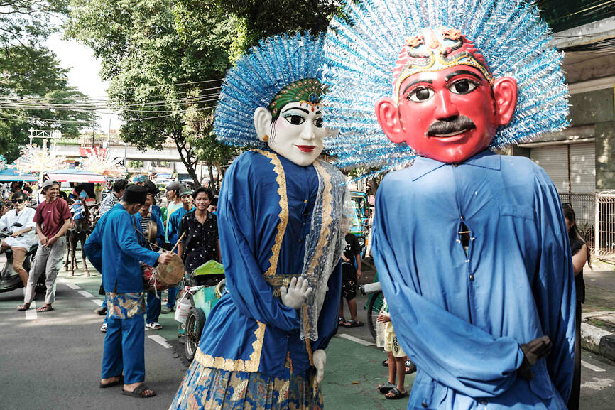 “The ondel-ondel is heavy; it is very hot inside,” Adi said. “But I do it anyway because if I don’t, my wife and my kid won’t be able to eat.”