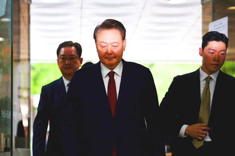 Ousted former South Korean president Yoon Suk-yeol, who is in detention while on trial and facing various criminal probes, lay on the floor of his cell yesterday and refused to leave it for questioning, a spokesperson for a special prosecutor said.