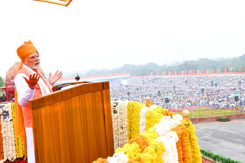 Modi delivered his annual Indian Independence Day address from the imposing ramparts of New Delhi’s Red Fort at a time when India faces intense pressure and threats of additional tariffs from the US.
