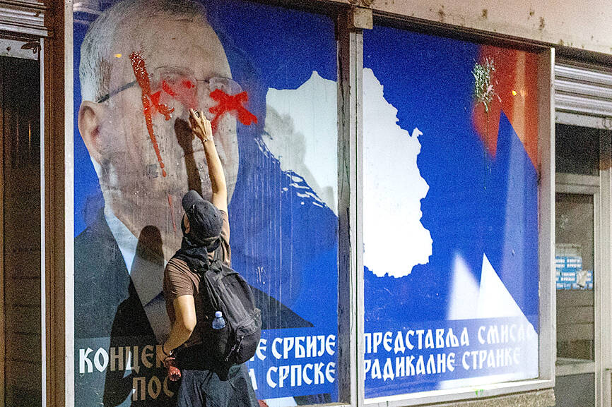 The incident marks the second such attack on SNS party offices in the past week after protesters demolished the party headquarters in the northern city of Novi Sad on Wednesday.