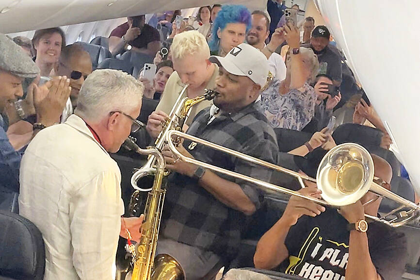 Passengers on a flight from St Louis, Missouri, to Seattle on Monday last week got an unexpected pick-me-up when jazz saxophonist Dave Koz and bandmates held an impromptu jam session in the aisle while the plane was stuck on the tarmac hundreds of kilometers from their final destination.