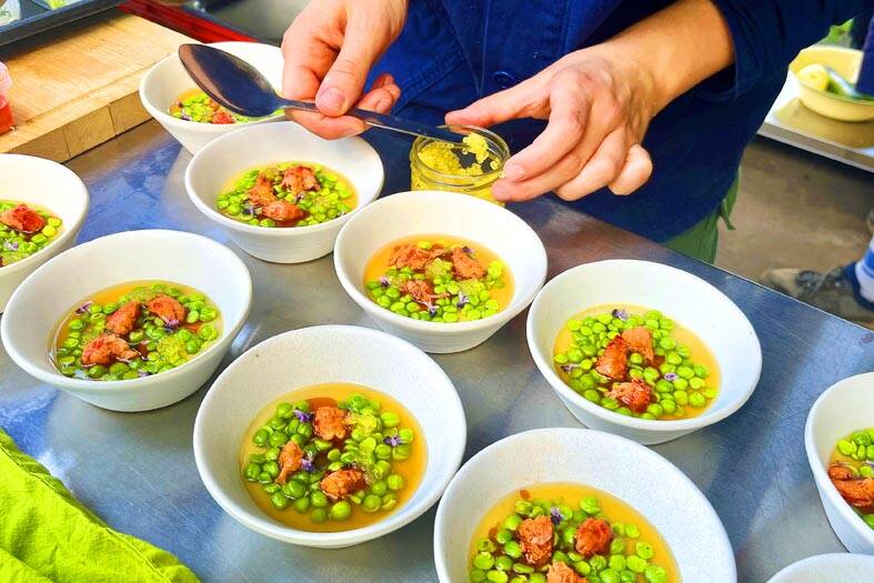 After a first course of crayfish and peas with basil, diner Britta Rosenthal said she wanted to find out “what herbs can do” and “perhaps to become a bit more courageous preparing food, not just with pepper, salt and paprika, but also with green fresh stuff.”