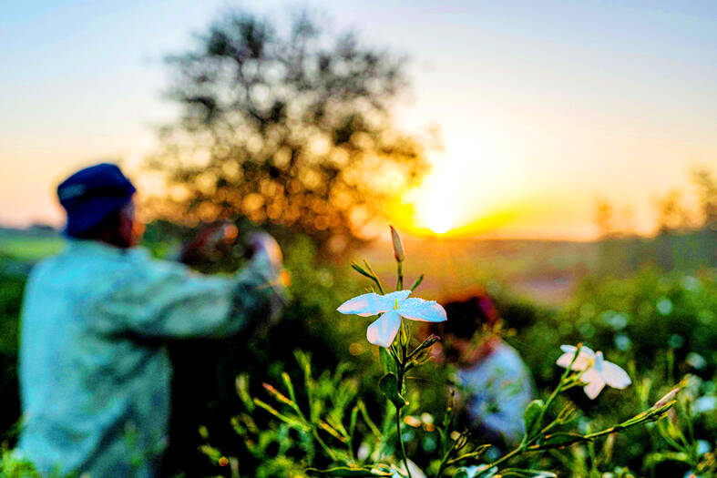 A tonne of flowers yields only 2 to 3kg of concrete and less than half that in pure essential oil — enough for about 100 perfume bottles.
