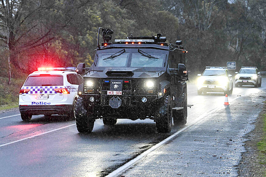 Police yesterday said they would not rest until they catch a 56-year-old gunman who fled into the bush two days earlier after allegedly killing two officers. Detectives said they were speaking to the man’s partner and searching rugged, forested terrain near the small town of Porepunkah, in Victoria’s northeast. The suspect, identified by police as Dezi Freeman, escaped on foot after opening fire when a team of 10 police arrived at his property on Tuesday, allegedly killing two policemen and wounding a third. Police said the man — described by local media as a radicalized conspiracy theorist — is heavily armed, has bush survival skills and knows the area well.