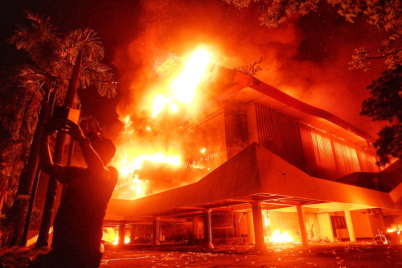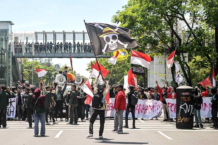 The most serious unrest was seen in the eastern city of Makassar, while protests also unfolded in Bandung, Surabaya, Solo and Yogyakarta. By yesterday morning, crowds had dispersed in Jakarta. Troops patrolled the streets with tactical vehicles and helped civilians clear trash, although smoke was still rising in various protest sites.