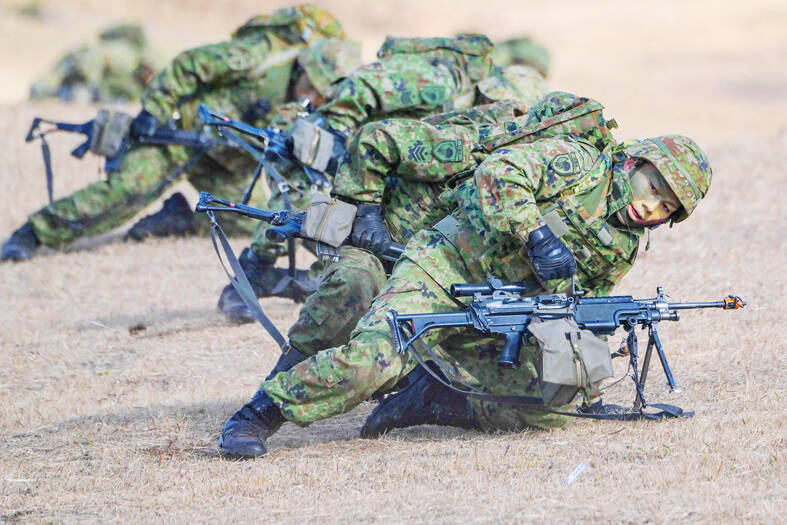 Sporting dark face paint and clutching a gun, teenage soldier-in-training Takuma Hiyane crawls across a field on Japan’s Okinawa, the front line of the nation’s defense as anxiety grows over China’s territorial ambitions.