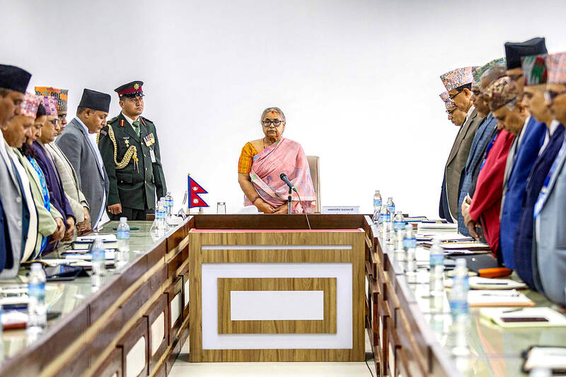 Karki yesterday held a minute’s silence for those killed in the unrest, before meetings began in the key government complex of Singha Durbar — where several buildings were set on fire during mass protests on Tuesday last week.