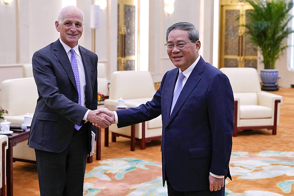 A bipartisan group of US lawmakers on Sunday pushed for more military-to-military dialogue in a meeting with Chinese Premier Li Qiang (李強), a rare US congressional visit since US-China relations soured.