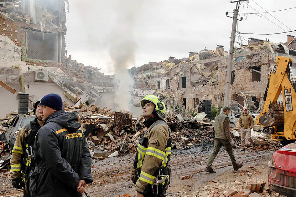 Ukraine yesterday said that Russia pounded the country with “hundreds” of drones and missiles overnight, killing at least four people in the capital alone, while neighboring Poland scrambled jets to secure its airspace.