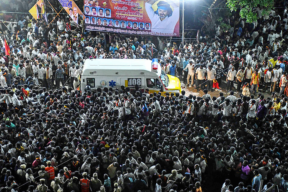 About 27,000 people thronged a public road in Tamil Nadu state in hopes of seeing popular actor-turned-politician Vijay on Saturday night, but panic broke out and 39 were killed, authorities said.