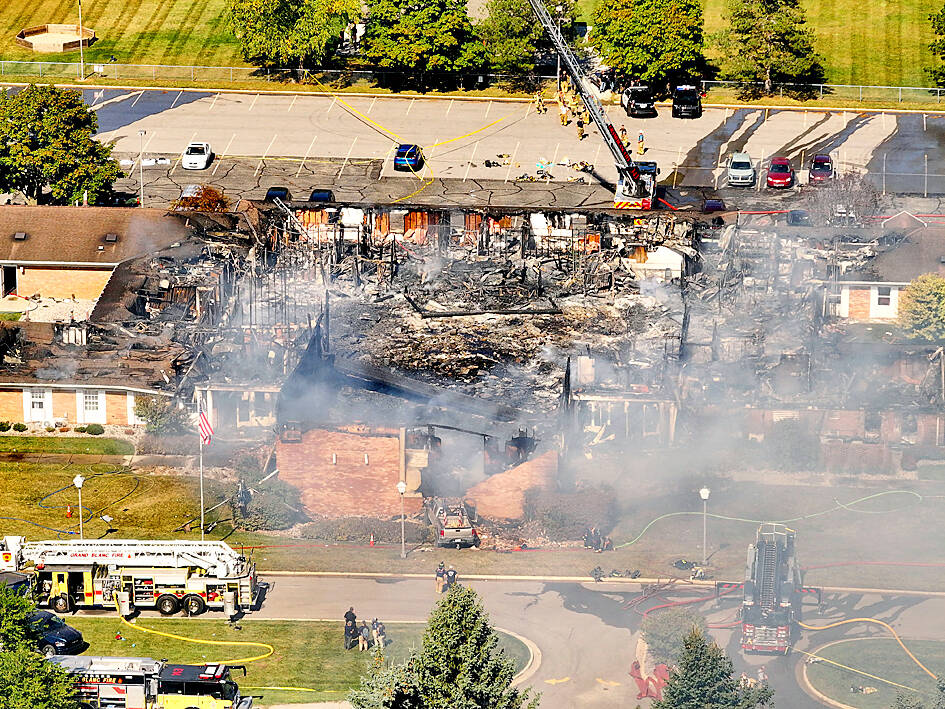 Images of the aftermath at the Church of Jesus Christ of Latter-day Saints in Grand Blanc, a suburb of the city of Flint, showed most of the building reduced to ashes.