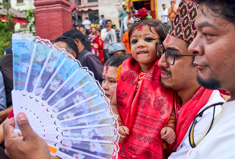 A two-year-old girl chosen as the nation’s new “living goddess” on Tuesday was carried by family members from their home in a Kathmandu alley to a temple palace during a Hindu festival. Aryatara Shakya, at two years, eight months old, was chosen as the new kumari, or “virgin goddess,” replacing the incumbent, who is considered by tradition to become a mere mortal upon reaching puberty. Kumaris are chosen from the Shakya clans of the Newar community, indigenous to the Kathmandu valley, and revered by Hindus and Buddhists. The girls are selected between the ages of two and four, and are required to have unblemished skin, hair, eyes and teeth. They should not be afraid of the dark. “She was just my daughter yesterday, but today she is a goddess,” her father, Ananta Shakya, said, adding that there were already signs she would be the goddess before her birth. “My wife during pregnancy dreamed that she was a goddess and we knew she was going to be someone very special.”