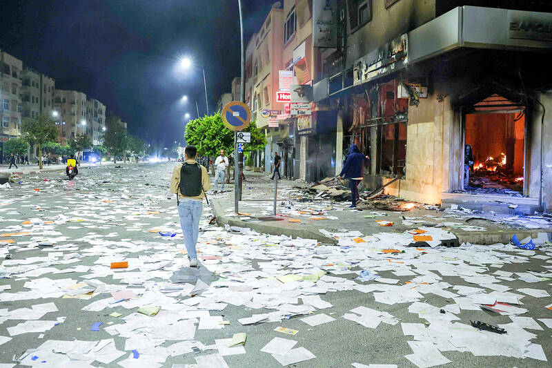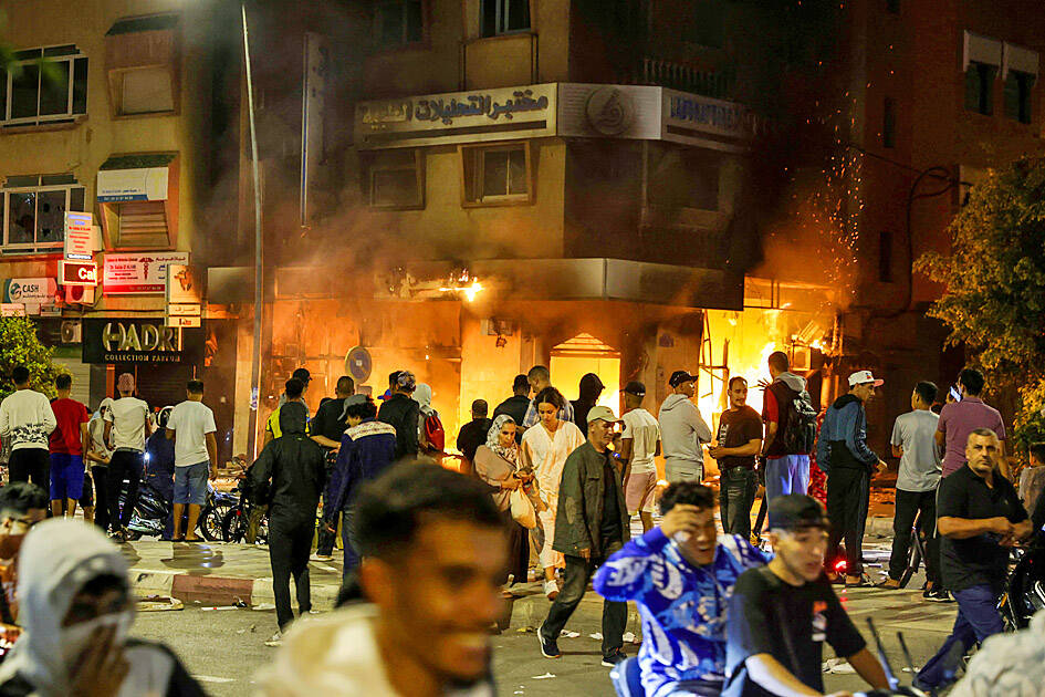 In Sale, a city just across the river from Morocco’s capital, an Associated Press reporter saw hundreds of masked young people torching vehicles, banks and shops, smashing windows and looting, with no police in sight.