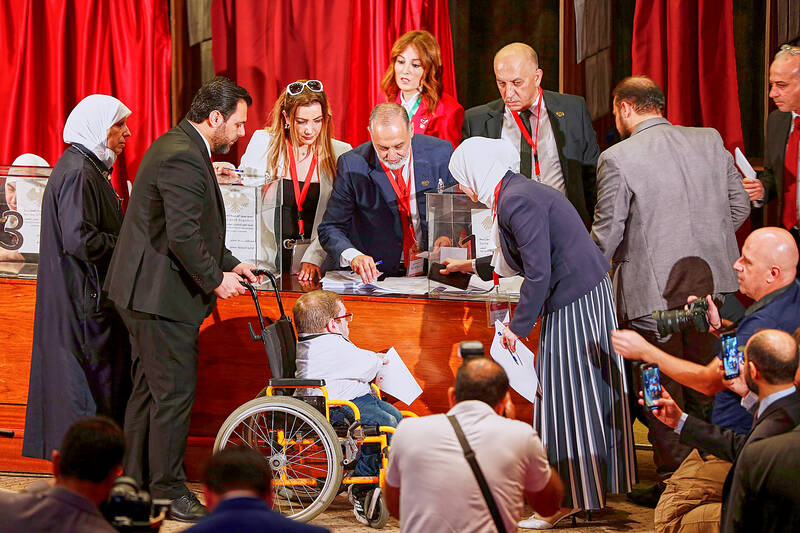 Members of Syria’s electoral colleges yesterday gathered to vote for new lawmakers, a milestone in the country’s shift away from the ousted regime of former Syrian president Bashar al-Assad and a major test of inclusivity under its Muslim authorities.