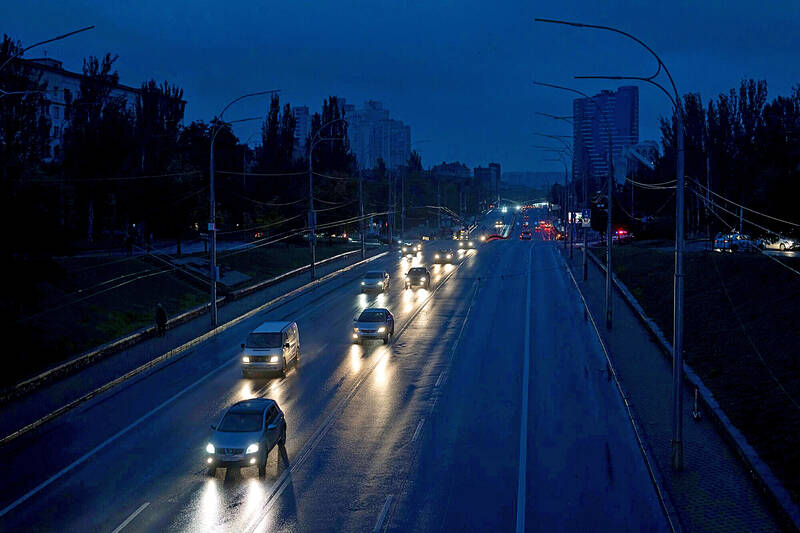 The Ukrainian capital was plunged into darkness early yesterday by what the Ukrainian air force called a “massive attack,” as Russia pummeled Kyiv’s infrastructure, cutting off water and energy supplies.