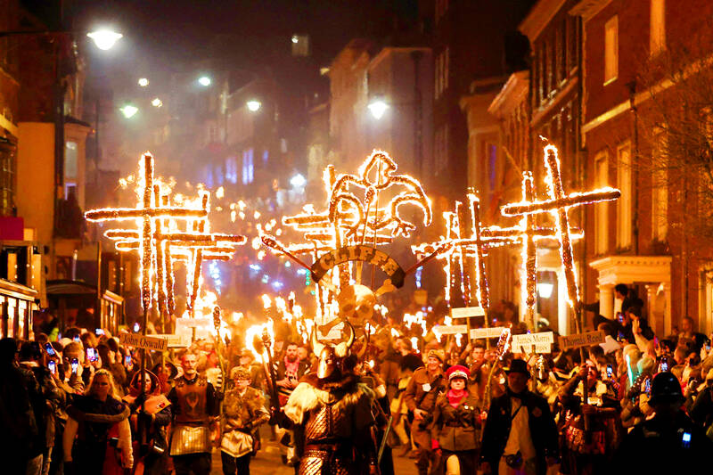 Participants in costumes carry torches as they march during Bonfire Night festivities in Lewes, England, on Wednesday. Also known as Guy Fawkes Night, the annual event commemorates the Nov. 5, 1605, arrest of Fawkes, who was guarding explosives at the House of Lords as part of a plot to assassinate King James I.