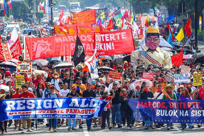 Left-wing groups led a separate protest in Manila’s main park with a blunt demand for all implicated government officials to immediately resign and face prosecution.