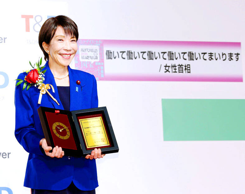 The pledge by Japanese Prime Minister Sanae Takaichi to “work, work, work, work and work” for her country has been named the catchphrase of the year, recognizing the effort Japan’s first female leader had to make to reach the top.