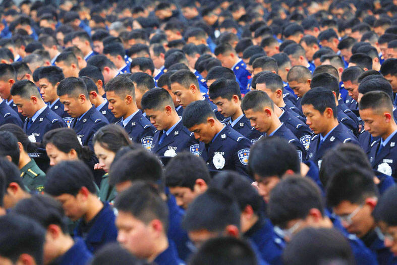 Chinese People’s Political Consultative Conference Vice Chairman Shi Taifeng (石泰峰) during the ceremony referenced Xi’s speech at a military parade in Beijing in September marking 80 years since the end of WWII.