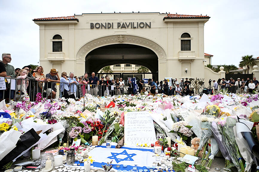 Australian Prime Minister Anthony Albanese yesterday announced plans for a national bravery award to recognize civilians and first responders who confronted “the worst of evil” during an anti-Semitic terror attack that left 15 dead and has cast a heavy shadow over the nation’s holiday season. Albanese said he plans to establish a special honors system for those who placed themselves in harm’s way to help during the attack on a beachside Hanukkah celebration, like Ahmed al-Ahmed, a Syrian-Australian Muslim who disarmed one of the assailants before being wounded himself. Sajid Akram, who was killed by police during the Dec. 14 attack, and